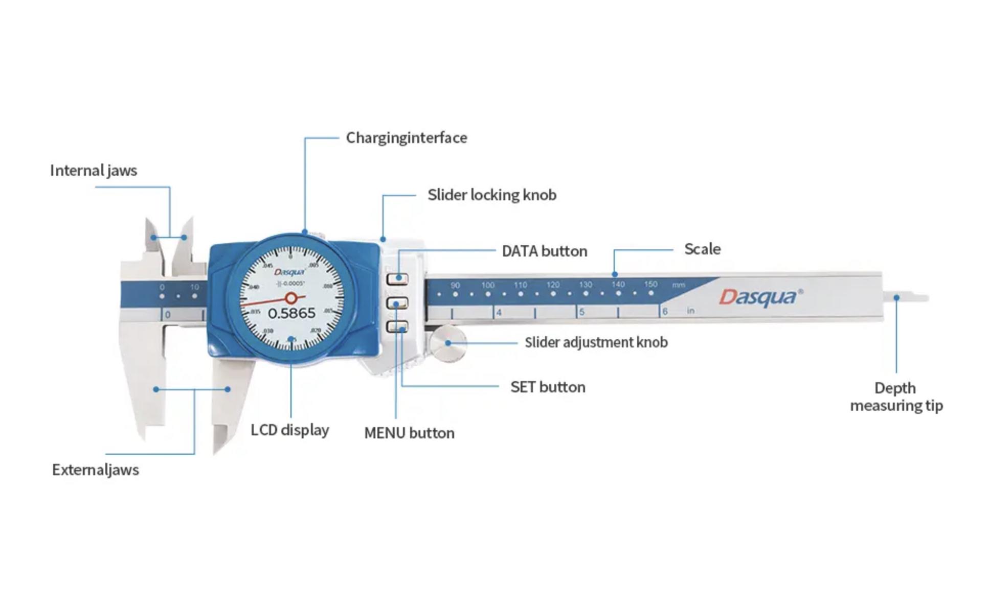 Calibri digitali a quadrante Dasqua 150 mm/6" IP67 Micrometro elettronico 0,0005" Conversione metrica, pollici e frazionaria Strumento di misura antiurto con custodia