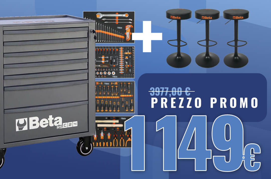 Per tutto il mese di febbraio e fino ad esaurimento scorte, acquistando la cassettiera industriale RSC24/7 è possibile approfittare di un’offerta particolarmente vantaggiosa che include non solo la struttura completa, ma anche un ampio assortimento di utensili e un set di sgabelli regolabili.